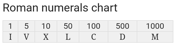 The given string s is valid roman numeral. Roman numerals are a method of writing numbers dating back as far as 800 b.c. On the other hand, using the vinculum which is a . That's higher and has fewer symbols than the above answer. I, v, x, l, c, .